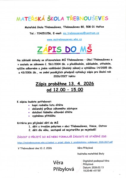 724 251 256 Absenci dětí prosím omlouvejte telefonicky nebo formou sms